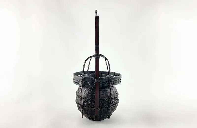 1948年生まれの安藤竹良斎は、名古屋で茶道籠師として独立後、唐物籠や侘び籠の写しをはじめ、花籠・花入・菓子器など、多様な茶道具の制作に取り組んでいます。